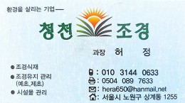 - 본 게시물은 청천조경 에서 제공한 자료로 개인정보를 포함하고 있으며 임의유포, 수집, 배포가 금지됩니다.